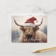 Merry Christmas highland cow in a festive plaid Santa hat make the perfect holiday postcard for all your family & friends. White script on the front. Transparent copy if cow on reverse side. Any one would love to receive this sweet budget postcard.