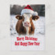 cow smile snow merry ,christmas bull santa claus, buffalo happy cute hat ,winter holiday , christmas animal, funny cow