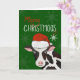 Share some holiday cheer with this card featuring a whimsical black and white hand-drawn cow and the handwritten words: "Merry Christmoos." The playful design makes it a delightful way to spread laughter and festive joy.