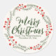 Merry Christmas light cream and dark green script with a rustic leafy dark green and red wreath frame border cheerful happy cute stickers, labels, envelope seals, gift tags, favour stickers.