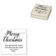 Christmas holiday rubber stamp with text, "Merry Christmas" in a beautiful cursive script font, your family name, and address.