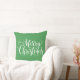 This holiday throw pillow is shown with a Merry Christmas print.