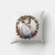 This simple and stylish Christmas pillow features a picture of a Christmas tree in a circle with a cute girl character smiling happily inside.