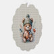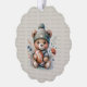 Custom ornament is a great holiday option. A great way to decorate your home for Christmas and also be used as a gift tag or Christmas card. Modern design with flowers and a cute bear holding a football. Ecru background. The ornament has a Merry Christmas greeting. You can customise the text. Add your favourite photo to one side. Use the template to create your own custom ornament.