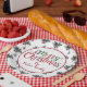 Infuse your holiday table with warmth and tradition. This Christmas-themed plate features a customizable center text, allowing you to add your family name or greeting for a personal flourish.