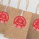 Red and white Merry Christmas stickers personalised with company name and logo for professional branding .