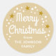Merry Christmas Custom Name Simple Gold Classic Round Sticker