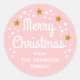 Merry Christmas Custom Name Simple Pink Classic Round Sticker