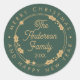 Merry Christmas Custom Name Year Script Wreath Classic Round Sticker