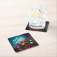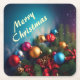 Merry Christmas Custom Personalise Text Square Paper Coaster. Colourful decorations on a deep blue background. Personalise this Coaster with your own text. Merry Christmas & A Happy New Year from InfinityDigitalArt