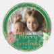 Merry Christmas Custom Photo on Green & Gold Classic Round Sticker