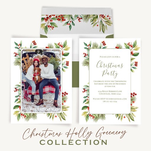 Botanical Merry Christmas Holly Berries MistletoeDesigned by laura lacina