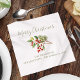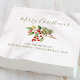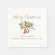 This design features a merry Christmas red and green, holiday party napkin, with simple typography, an elegant, minimal, calligraphy script, with botanical greenery, and holly berries, minimalist Christmas party napkin