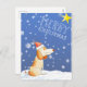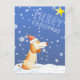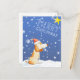 NewParkLane - Postcard, with a cute cartoon dog in watercolor, sitting in the snow at a snowy night, with a Merry Christmas wish in fun, handdrawn typography, and a bright yellow star.