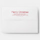 Return address envelope featuring the text "Merry Christmas" in a cute display font with the return address below and a pattern of cute dotted stripes on a red background inside.