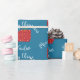 Merry Christmas personalised wrapping paper with cute gift and custom name on and teal background