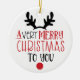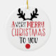 This modern design features the text "A very merry Christmas to you" accented with a reindeer's antlers and a red nose. Perfect for your first Christmas gifts. #christmas #holidays #christmasgifts #christmasdecor #christmasornaments #holidaydecor #christmasornaments #ornaments #home #homedecor #decor #holidaydecor #fun #gift #gifts