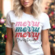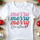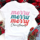 Celebrate the holiday season with this colourful and cheerful "Merry Merry Merry Christmas" shirt! Featuring playful pink, teal, and red lettering, this design is perfect for anyone who loves to spread joy during the holidays. The modern script and vibrant colours make it ideal for festive parties, casual outings, or as a thoughtful gift for friends and family. This shirt blends fun and style, making it a must-have addition to your Christmas wardrobe. Whether you're attending a holiday event or just getting into the Christmas spirit, this design is sure to make you stand out!