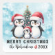 Merry Christmas Cute Penguins Blue and Red Custom Square Sticker