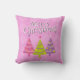 Merry Christmas Cute Pink Trees Cushion