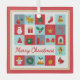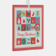 Merry Christmas Cute Retro Winter Christmas Icons Christmas Ornaments features the text "Merry Christmas" in modern red script typography accented with Christmas icons such as reindeer, tree, stocking, bell, snowman, gift, wreath, holly, star, candy cane, gingerbread, angel and more. Designed by Evco Holidays www.zazzzle.com/store/evcoholidays