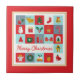 Merry Christmas Cute Retro Winter Christmas Icons Christmas Decorative Ceramic Tiles features the text "Merry Christmas" in modern red script typography accented with Christmas icons such as reindeer, tree, stocking, bell, snowman, gift, wreath, holly, star, candy cane, gingerbread, angel and more. Designed by Evco Holidays www.zazzzle.com/store/evcoholidays