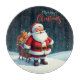 A whimsical winter scene featuring Santa Claus, laden with gifts, on his sleigh amidst a snowy landscape. The text "Merry Christmas" is elegantly displayed in festive colours, adding to the joyous atmosphere of the holiday season.