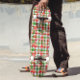 Cute Modern Red green and White twill Gingham check tartan Plaid with Merry Christmas Text and Christmas Decorations of trees, bell, and snowflakes seamless pattern design