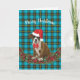 Merry Christmas Dog Puppy Plaid Santa Hat Holiday Card