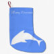 "Merry Christmas" with white dolphin design on coastal marine blue.