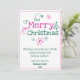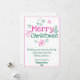 Fun Merry Christmas Doodles Pink And Green Holiday Card. Personalise with your family name and greeting.