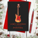 A cool stylish musical way to rock Christmas with this flame electric guitar wearing a Santa hat simple illustration with stylish typography script on a black background . This music themed minimalist merry christmas greetings card is perfect for musicians, guitarists and budding rockstars, the typography script design is easy to personalise using the template. Funny Santa Musical instrument original artwork by Catherine Sweetman