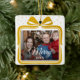 Merry Christmas Elegant Bow Present Photo Collage Ceramic Ornament | Gold Luxe Personalised Picture Keepsake