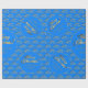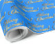 Merry Christmas Elegant Faux Gold Foil Script Golden Text Pattern on Cerulean Blue Background Holiday Season Glossy or Matte Gift Wrapping Paper, you can add name or text