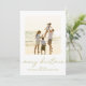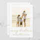 This design features a merry Christmas two 2 photo, modern simple elegant family, minimalist picture photo collage, with gold calligraphy script typography, a traditional clean trendy stylish, and happy new year, with minimal family photo collage, Christmas multi-photo cards, Christmas photo greeting cards, a Christmas holiday family photo