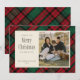 Merry Christmas Elegant Green Red Plaid Photo Holiday Card