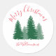 This beautiful Christmas gift round sticker features green pine trees and festive red elegant script typography. Add your Merry Christmas on the top and your custom name / last name on the bottom. You can customise it easily through the ´´Personalise´´ button. It will look beautiful on gifts for your family and friends!