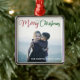 Elegant Merry Christmas photo ornament with beautiful cursive typography in red and green. This modern holiday family photograph features gorgeous script and your name in white over the full bleed picture for a great personalised holiday gift.