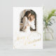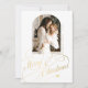 Elegant stylish Merry Christmas faux gold classic calligraphy script family photo simple white holiday card with your custom personalised text on both sides. +++++++++ PLEASE NOTE that the background colour is editable. You can change it after selecting CUSTOMIZE option down below the PERSONALIZE IT menu. If you don't feel at ease changing it, please ask Zazzle Live Design Service or the designer for help.