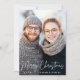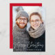 Merry Christmas card with the text "Merry Christmas" in a handwritten style script font over your photo on the front. Additional photo and custom message on a red background on the back.