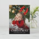 Elegant Christmas Holiday Photo card with decorative script typography over full bleed photo. Transparent gradient overlay (optional) for light photos. Red and white candy cane stripes backer.