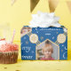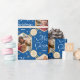 Make your holiday gifts extra special with custom photo wrapping paper! This editable template is personalised with four of your favourite photos, and the recipient's name, your family name, or the holiday year. It features hexagonal picture frames, set against a festive background of snowflakes and stars, along with the phrase "Merry Christmas". A stylish design pairing traditional typography with a classic geometric design. Perfect for photos of kids, family, friends, and pets! This seamless pattern gift wrap is available with a matte or glossy finish. Printed colours: blue, white, and a gold colour.