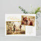 Send Christmas cheer this year with this simple and elegant gold and white two-photo holiday card. The beautiful Merry Christmas type treatment in foil is paired with two scrapbook style photos. The festive holiday card also features an area for a custom message above the name and year. The coordinating festive red backer is dotted with a starry white pattern.