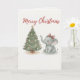Front: baby elephant with red bow beside decorated Christmas tree, “Merry Christmas” text