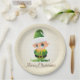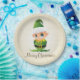 Merry Christmas Elf Holiday Paper Plates. A festive and whimsical Christmas elf that has a message of Merry Christmas on a faux linen textured background.
