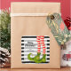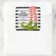 Elf legs in striped tights and green boots on black and white stripes and gold features Merry Christmas and your name these Christmas square stickers. MATCHING items in our store.