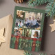 Elegant stylish plaid tartan real gold foil Merry Christmas script six family photos classic traditional red forest green holiday card with your custom personalised text on both sides.