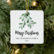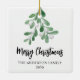 Merry Christmas Family Name Elegant Botanical Ceramic Ornament