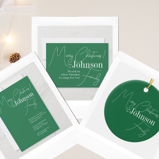 This is a modern, Merry Christmas design. It is in festive green and white. It has the message, "Merry Christmas! from the Johnson Family", in white stylish typography script. It has the same message / design, on the front and back. To personalise, simply add your name in the personalise this text box. Here you can also change the rest of the text if you want to. Check out the design editing tool to change the colour or font. Perfect for giving to your friends and family this holiday season and ideal as celebration party favours! Merry Christmas! For help with personalisation, matching products, or for a custom design email: ursuladawnmoon@gmail.com
