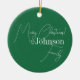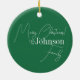 Merry Christmas Family Name Green Ceramic Tree Decoration
